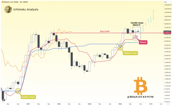 著名交易員Titan of Crypto也在X平臺上指出,Bitcoin月度收盤價高于61,600美元的“宏觀關(guān)鍵”水平,這進(jìn)一步增強了市場的積極情緒。他表示:“盡管存在波動,但BTC仍高于宏觀經(jīng)濟的重要水平。這是非常令人鼓舞的。夏季可能會帶來無聊的市場,但未來幾個月將令人興奮。”