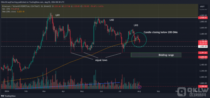 ETH價格面臨跌破3000美元的風險