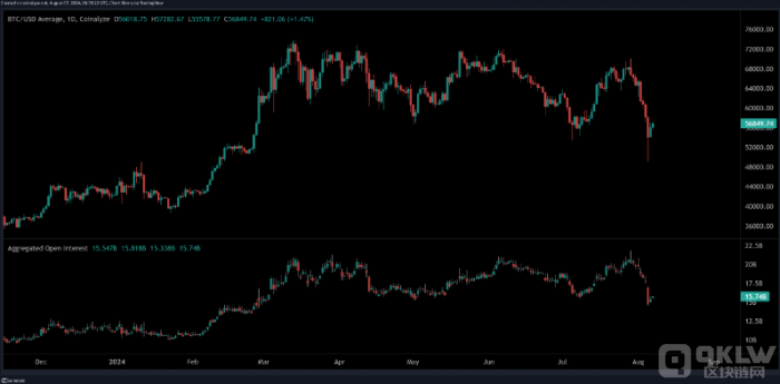 近期,Bitcoin持倉量(Open Interest)從7月29日的210億美元峰值下降至8月6日的150億美元以下,這表明交易者可能在采取保守策略以避免清算。與此同時,8月5日的虧本出售Tokens數量創下紀錄,超過52億美元的Bitcoin在短時間內被轉移。