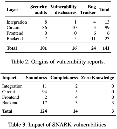 近期,倫敦帝國理工學院的研究團隊發布了一項重要研究,指出基于短非交互式知識論證(SNARK)的系統存在嚴重的電路層漏洞。這項研究分析了107份審計報告和16份漏洞披露報告,涵蓋了141個與流行SNARK項目相關的漏洞,并于8月7日在哥倫比亞大學的Blockchain科學會議上公布。