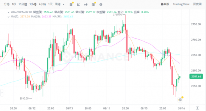 Ethereum價格昨日最低跌至2500美元,24小時內跌幅超過3.5%。