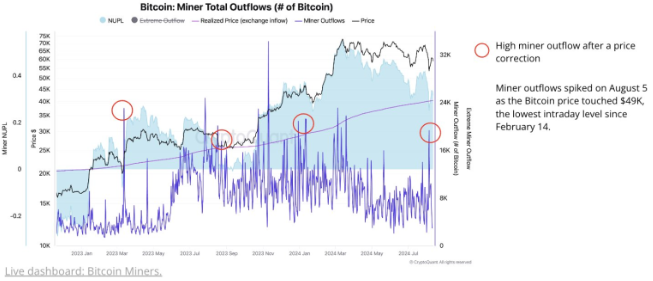 CryptoQuant也表達了對礦商現狀的憂慮。根據該機構的最新數據,Bitcoin礦工的盈利壓力達到了今年以來的最低點:“上周我們觀察到礦工‘投降’的跡象,8月5日Bitcoin流出量達到1.9萬枚,是自今年3月以來的最高值。”