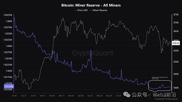 Bitcoin礦工儲備。來源:加密量化