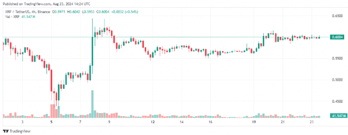 截至目前,XRP的交易價(jià)格約為0.60美元,過(guò)去24小時(shí)內(nèi)下跌了0.5%,但本周已上漲超過(guò)6%。