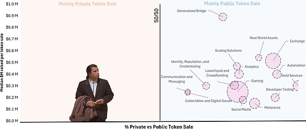 今年以公售的方式進(jìn)行Tokens發(fā)行占據(jù)主導(dǎo)地位,占年初至今所有Tokens發(fā)行的81%。甚至沒(méi)有一個(gè)賽道私募的項(xiàng)目能比公售的項(xiàng)目多,這表明公售受到市場(chǎng)強(qiáng)烈青睞。