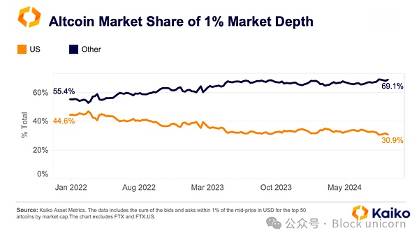 盡管過(guò)去幾個(gè)月波動(dòng)性很大,山寨幣的1%市場(chǎng)深度在第三季度保持相對(duì)平穩(wěn),維持在2.7億美元,表明盡管持續(xù)的波動(dòng)性,做市商依然在提供流動(dòng)性。