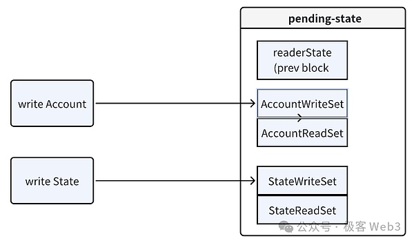 2.為每個線程分配臨時狀態(tài)數(shù)據(jù)庫:Reddio為每個線程都分配一個獨(dú)立的臨時狀態(tài)數(shù)據(jù)庫(pending-stateDB)。各個線程在執(zhí)行交易時,不會直接修改全局的stateDB,而是將狀態(tài)變化結(jié)果暫時記錄在pending-stateDB中。