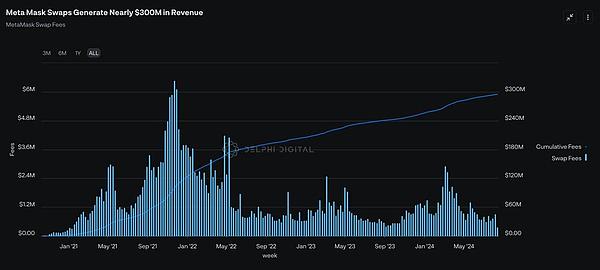 展望未來,如果錢包能夠利用上述趨勢并繼續(xù)掌握最終用戶關(guān)系,我預(yù)計錢包內(nèi)的交換將繼續(xù)蠶食其他前端的市場份額。更重要的是,即使它們僅能將市場份額提高5%,由于錢包交換每交易100美元產(chǎn)生的收入幾乎是DEX前端的100倍,這一增長也將產(chǎn)生巨大的影響。