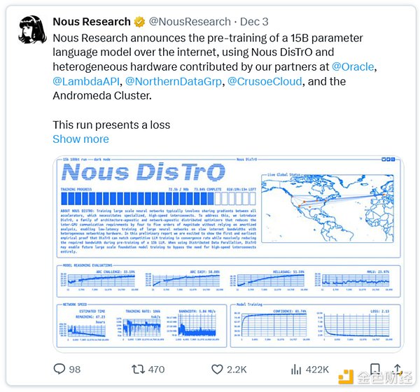 去中心化訓練:例如@exolabs、@NousResearch和@PrimeIntellect