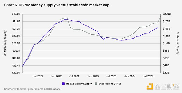 截至2024年11月30日,穩(wěn)定幣市場(chǎng)已完成近27.1萬(wàn)億美元的交易,幾乎是2023年同期11個(gè)月9.3萬(wàn)億美元的三倍。其中包括大量的點(diǎn)對(duì)點(diǎn)(P2P)轉(zhuǎn)賬和跨境企業(yè)對(duì)企業(yè)(B2B)支付。企業(yè)和個(gè)人越來(lái)越多地利用USDC這樣的穩(wěn)定幣來(lái)滿足監(jiān)管要求,并與Visa和Stripe等支付平臺(tái)進(jìn)行廣泛集成。Stripe在2024年10月以11億美元收購(gòu)了穩(wěn)定幣基礎(chǔ)設(shè)施公司Bridge,這是迄今為止加密行業(yè)最大的一筆交易。Tokens化革命