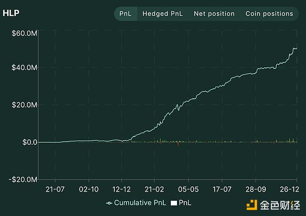 另外值得一提的是,Hyperliquid目前收入中流向HYPETokens的比例為54%,這個(gè)值仍有進(jìn)一步上升的空間。因?yàn)闄C(jī)制原因,HLP在2023年7月至今BTC漲幅超過200%的牛市中,一直以USDC為抵押物持有了大量的Crypto空頭頭寸,盡管HLP本身的策略得當(dāng),難得的保持了盈虧平衡,但是仍然需要付出年化30%以上的APR用于留住HLP內(nèi)資金。