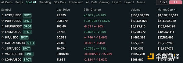Hyperliquid目前市值排名靠前的現(xiàn)貨Tokens