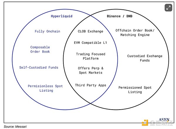 Hyperliquid的核心業(yè)務(wù)是衍生品和現(xiàn)貨交易所,這與Binance所對(duì)應(yīng)的主營(yíng)業(yè)務(wù)一致;