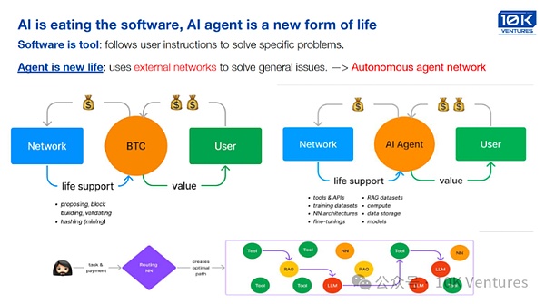 短期內,賦予Agent更便捷的加密支付的能力,足以擴展它們的行動范圍。從中長期來看,基于加密網絡的數字身份、無許可協議、去中心化應用,以及智能合約賦予的能力,將使Agent能夠在數字世界中自主運作,與人類和其他Agent合作、競爭、博弈。加密網絡不僅為Agent提供了自主行動的基礎,也為未來人機協作的經濟模式開辟了新的可能性——當Agent能夠自主參與經濟活動,這一發展將為社會帶來巨大的變革。(以上是我們LP王超哥,寫得太好了,我得把原文放上來。)