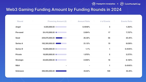 2024年七個項目在單筆事件中籌集超過2,000萬美元。AzraGames以4,270萬美元A輪融資領(lǐng)跑,專注于將主機(jī)級游戲體驗帶入移動平臺。