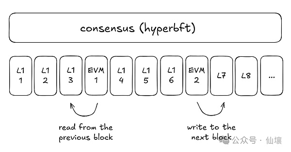 總結(jié)來(lái)看,HyperEVM類似于基于HyperliquidL1的二層,HyperEVM依賴于預(yù)編譯代碼讀取L1狀態(tài),也依賴于Events來(lái)與HyperL1產(chǎn)生交互。L1也存在一些系統(tǒng)合約幫助用戶在HyperEVM內(nèi)觸發(fā)交易,或是進(jìn)行資產(chǎn)跨鏈。但與一般的Layer1——Layer2架構(gòu)不同,Hyperliquid為HyperEVM提供了更高的互操作性。