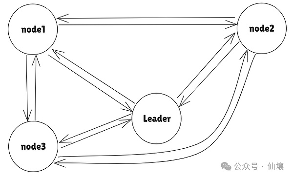 下圖展示了在非并行情況下的HyperBFT共識(shí)的消息傳遞方式,可以看到,所有的消息被Leader匯總并統(tǒng)一廣播,免去了節(jié)點(diǎn)之間自行交換消息的步驟,大幅降低了復(fù)雜度。