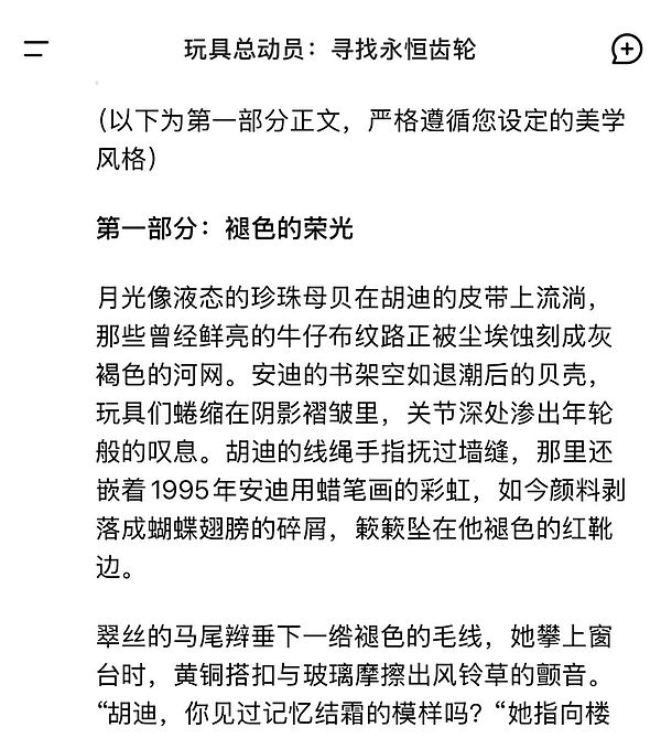這一操作,一下就讓整個輸出的畫面感撲面而來,讀者仿如親歷,而這完全沒有在提示詞中提出。