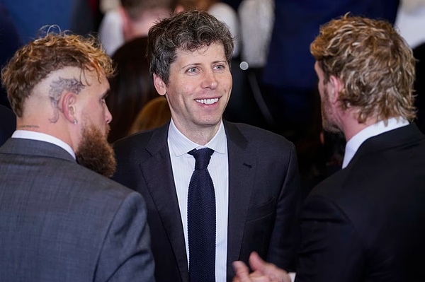 特朗普總統(tǒng)就職禮上的阿爾特曼(中)、拳擊明星JakePaul(左)和摔跤手LoganPaul。