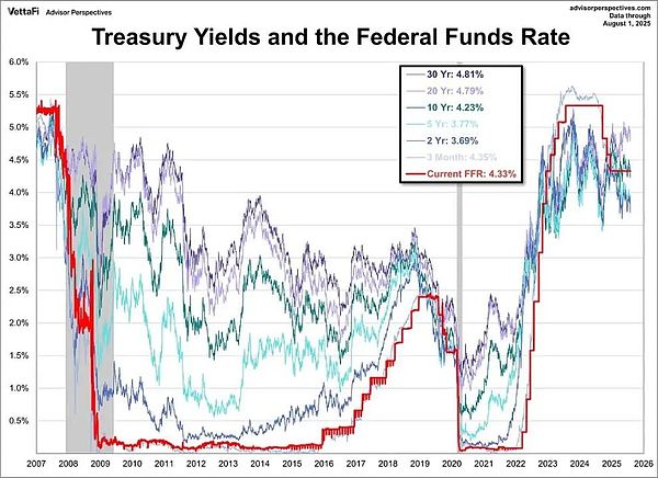 結(jié)合當(dāng)前美債收益率結(jié)構(gòu),3個月期美債收益率(4.35%)高于2年期收益率(3.69%),10年期收益率(4.23%)雖高于2年期,但主要受長期通脹預(yù)期支撐——市場將美聯(lián)儲9月降息預(yù)期解讀為“對滯脹的被動應(yīng)對”,而非“經(jīng)濟(jì)韌性下的主動調(diào)整”,這種“短期利率下跌+長期通脹黏性”的組合,符合“惡性陡峭化”的核心特征。