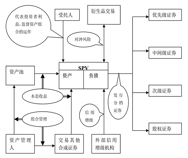 圖2 抵押債務(wù)證書(CollateralizedDebtObligations,簡稱CDO)的一般結(jié)構(gòu)