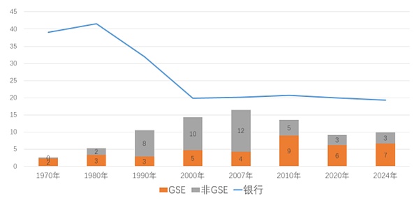 注:“GSE”為GSE發(fā)行的證券化產(chǎn)品占比;“非GSE”為GSE之外的機(jī)構(gòu)發(fā)行的證券化產(chǎn)品占比。