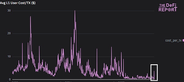 隨著DeFi活動(dòng)的增加,L1的平均交易費(fèi)用自去年第四季度以來首次出現(xiàn)飆升。