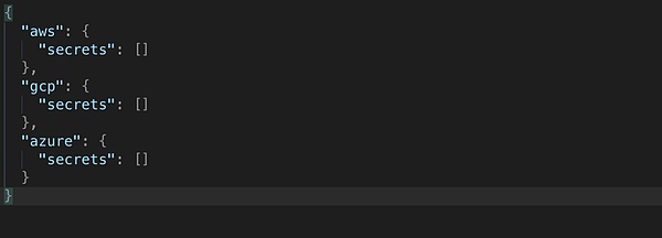 AWS:該惡意腳本實(shí)現(xiàn)runSecrets()和listAndRetrieveAllSecrets()方法,runSecrets()方法會(huì)遍歷所有能找到的云訪問憑據(jù)以及所有可能的區(qū)域,最大化掃描范圍;而listAndRetrieveAllSecrets()則在指定憑據(jù)與區(qū)域內(nèi)進(jìn)行“深度挖掘”,遍歷出所有Secret,并獲取其最新明文內(nèi)容。兩者配合后,攻擊者能夠?qū)⑹芎φ逜WS賬號(hào)中可訪問的所有SecretString和SecretBinary一次性全部導(dǎo)出。