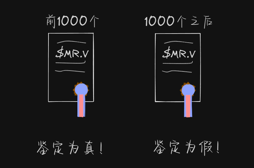 綜上這些特點,就是非同質Tokens的特質,所以銘文是NFT。而它和Ethereum上NFT最大的區別在于,NFT的一切數據均保存在鏈上,更加Decentralization所以也更加原教旨,更性感。NFT 說完了,那FT又是咋來的呢?關于token發行標準大家耳熟能詳的估計就是ETH上經典的ERC-20和ERC-721,分別對應著可拆分token和不可拆分token,這些協議都是基于ETH自帶的智能合約去設計完成的,而想在沒有智能合約功能的BTC鏈上發token,那就非常難了,但是ordinals協議的出現給了大家一個全新的思路,以單個聰作為載體,銘文作為標記,兩者結合就可以生成唯一獨特不可篡改的Tokens。假設我想發一款名為$MR.V的token,最大發行量為1000個,那么我直接用ordinals給1000個聰都刻上MR.V的字符,也可以在一個聰上刻滿1000個,1000個是Ordinals對一個聰刻銘文最大的容量。同時根據 First is first 的共識,既然是1000個,我只承認前1000個刻上MR.V字符的聰才是我發行的token,這問題不就迎難而解了。當然另一種情況,雖然規定了最大發行量是1000個,我采用了一個聰刻1個$MR.V的鑄造方法,我只鑄造了500個,剩余500個可以由任何人去鑄造,那么由別人鑄造的500個也是屬于“First is first”的共識范圍內了,后續超過最大發行量的多的$MR.V就不在共識范圍內了。