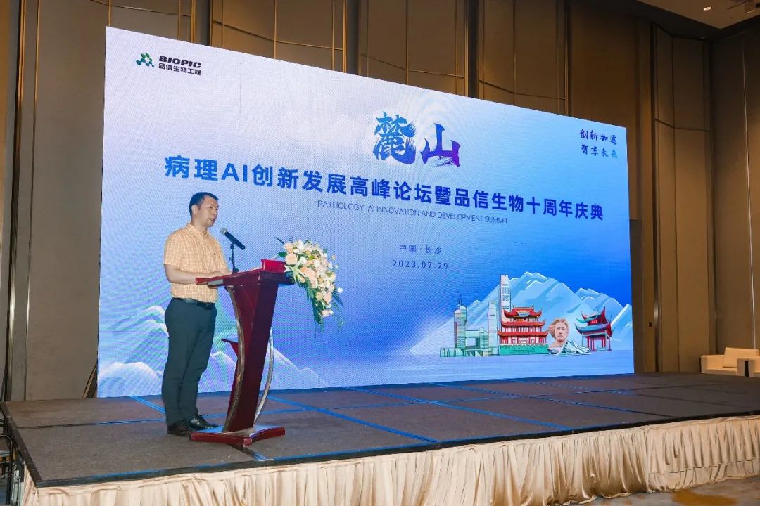 劉東戈教授對本次活動的順利舉行表示熱烈祝賀。他指出:十年來,病理AI得到了長足的發展,但在發展過程中依然受到很多條件的限制,在實際使用中還有很多醫生不愿意,甚至不敢嘗試新技術新項目,希望大家能突破思想的桎梏,勇于嘗試,不斷創新病理診斷技術。未來的病理AI發展仍然需要咱們病理科室的醫生和品信生物這樣的科研型企業一同協作,不斷創新,才能更好地實現病理AI全行業的可持續發展。