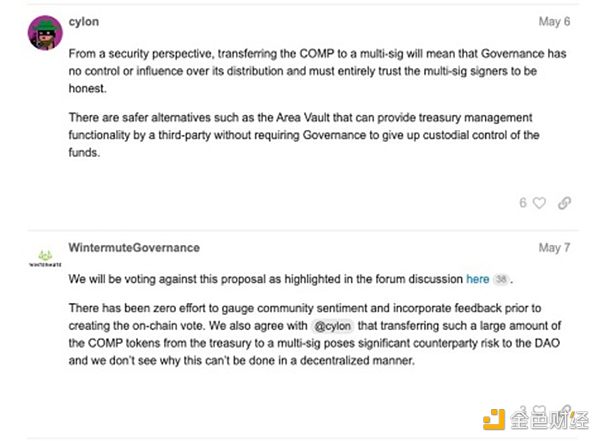 社區(qū)拒絕了這一提議,理由是:對未來的多簽活動缺乏保證;對大量金庫資金在無適當(dāng)保障的情況下轉(zhuǎn)移的擔(dān)憂。