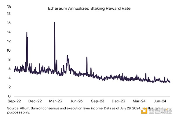 圖 4:Ethereum質押者目前的年化回報率約為 3%